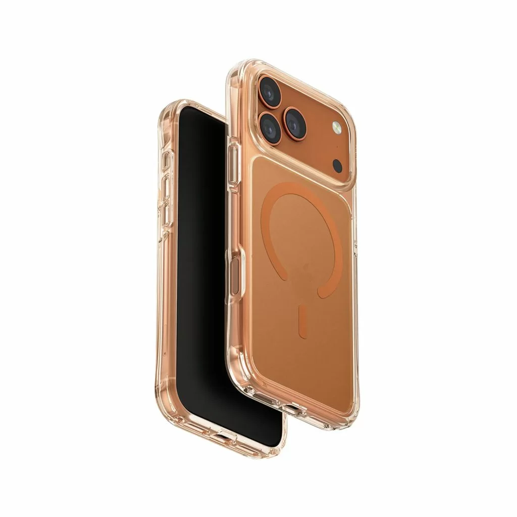 Лёгкий и надёжный аксессуар, идеально адаптированный к формам iPhone 17 Pro: MagSafe обеспечивает мгновенную и стабильную фиксацию, а продуманная многослойная конструкция бережно гасит удары и царапины. Внутренняя мягкая подкладка заботится о корпусе, а оттенок Clear/Volt Orange добавляет глубину цвета и приятные тактильные ощущения при каждом касании. Сохранён свободный доступ к камерам и элементам управления, а беспроводная зарядка работает без необходимости снимать аксессуар — всё для вашего смартфона и удобства использования.