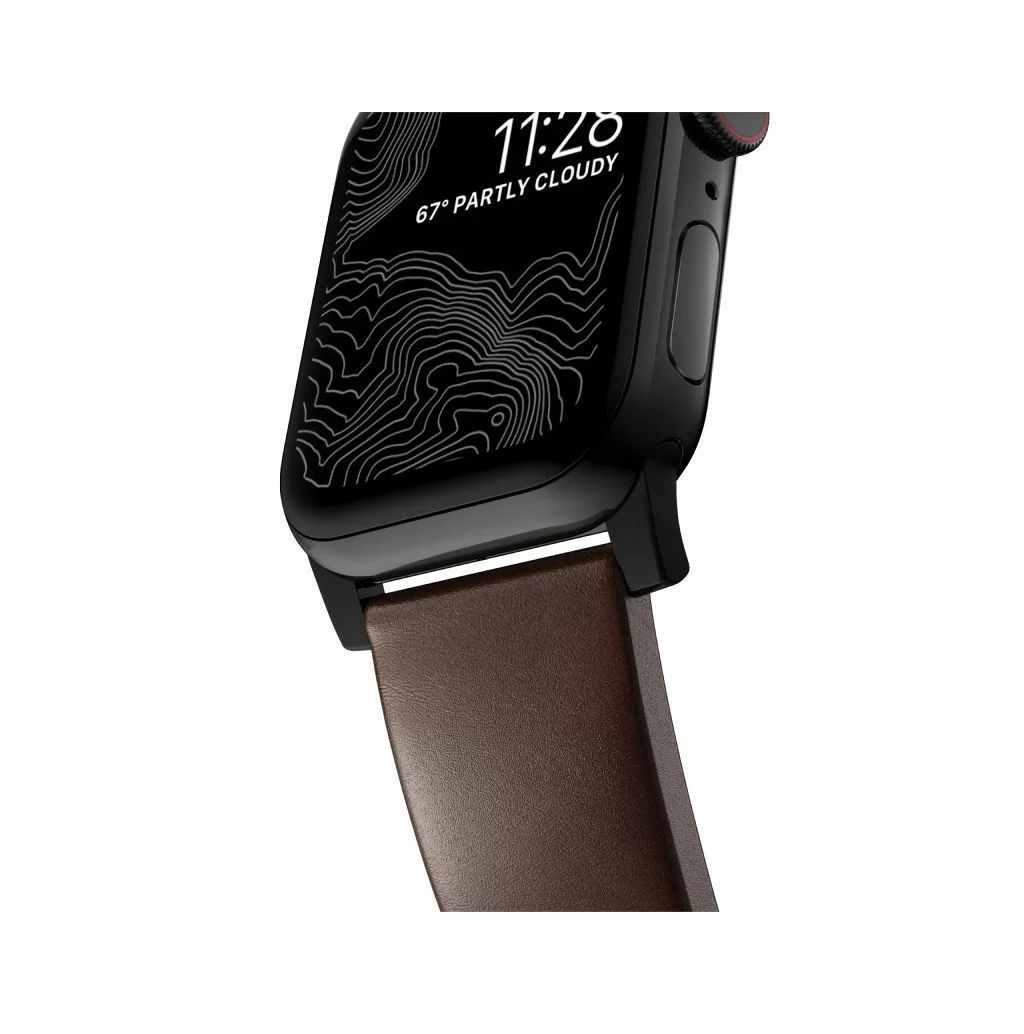 Ремешок Leather Strap от Nomad - разработанный, чтобы придать вашим интеллектуальным часам классический, но смелый новый вид Modern Strap изготовлен из минимально обработанной кожи растительного дубления из одной из старейших кожевенных мастерских Америки и нержавеющей стали. Качественная Horween кожа со временем создает патину, создавая богатый уникальный дизайн. Ремешок приятный на ощупь, регулируется под разный охват запястья.