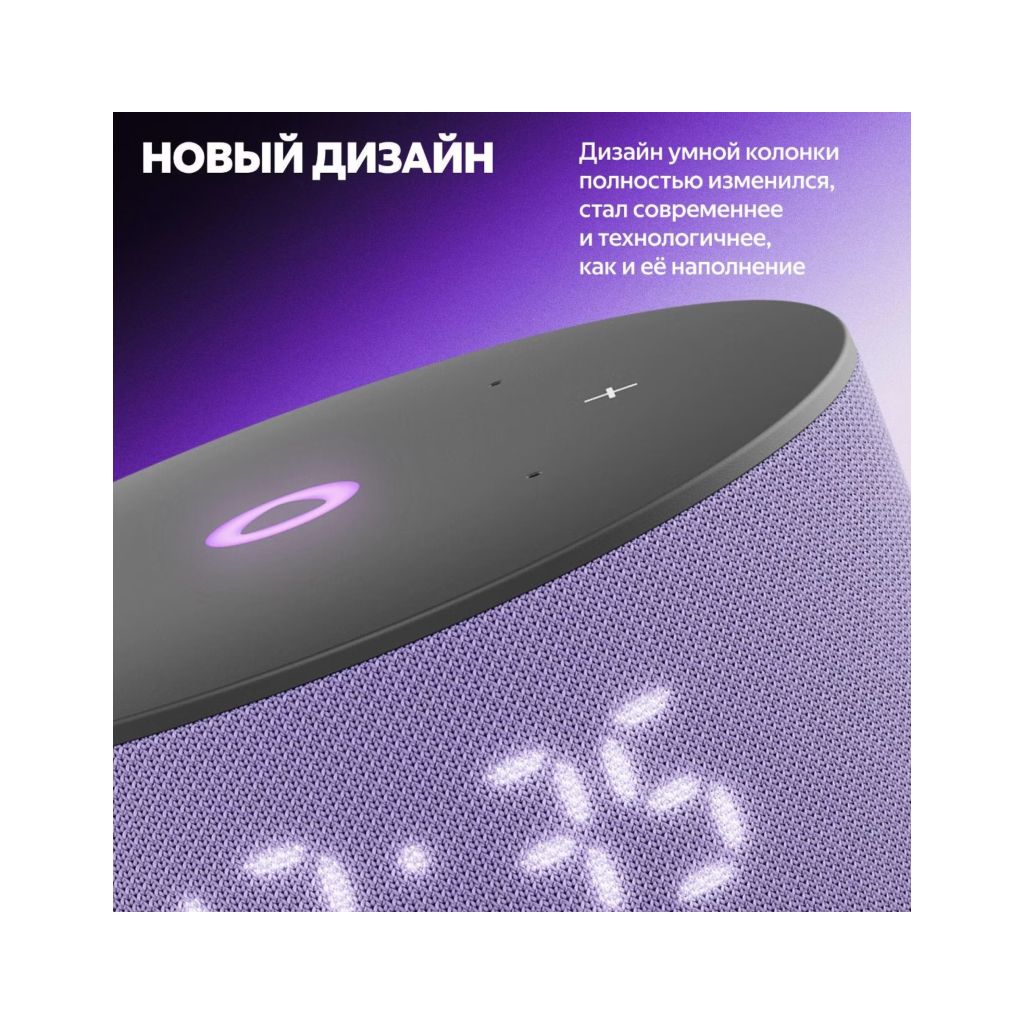 Благодаря более мягкой, цельной и гармоничной форме корпуса Станция Мини 3 отлично смотрится в любом современном интерьере. Цветовая палитра умной колонки тоже обновилась: можно выбрать классические чёрный и серый, а для ценителей акцентов подойдёт пастельный фиолетовый оттенок.